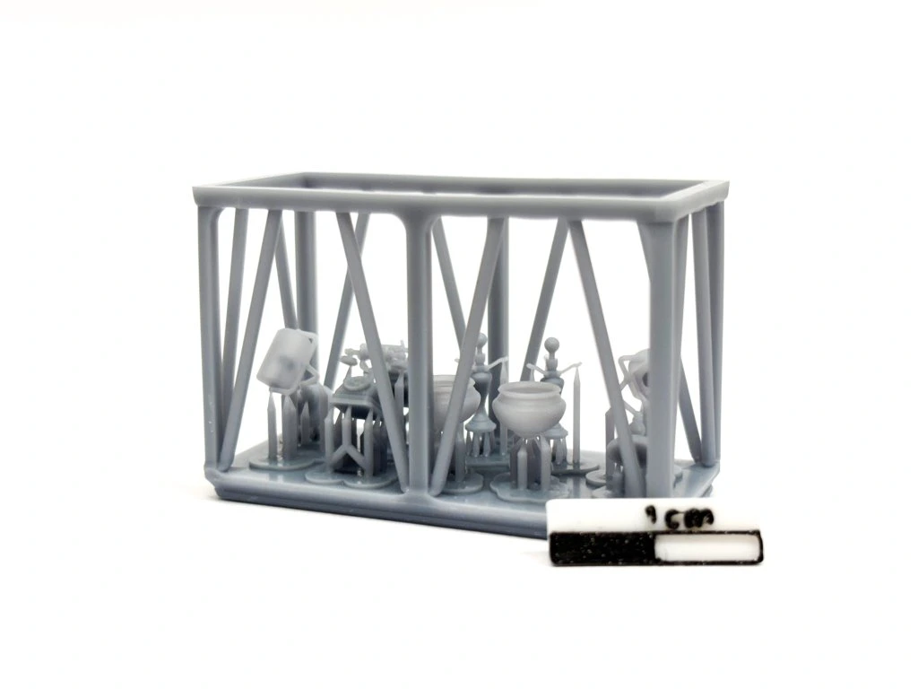 Produkováno pomocí technologie resinového SLA 3D tisku. Před sestavením je nutno opatrně odštípnout podpěry kleštičkami po namočení v horké vodě.