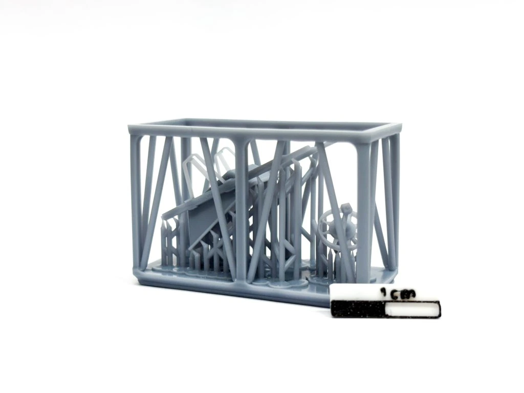 Produkováno pomocí technologie resinového SLA 3D tisku. Před sestavením je nutno opatrně odštípnout podpěry kleštičkami po namočení v horké vodě.