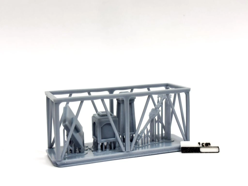 Produkováno pomocí technologie resinového SLA 3D tisku. Před sestavením je nutno opatrně odštípnout podpěry kleštičkami po namočení v horké vodě.