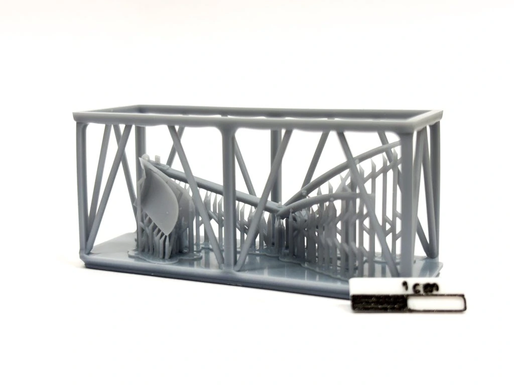 Produkováno pomocí technologie resinového SLA 3D tisku. Před sestavením je nutno opatrně odštípnout podpěry kleštičkami po namočení v horké vodě.
