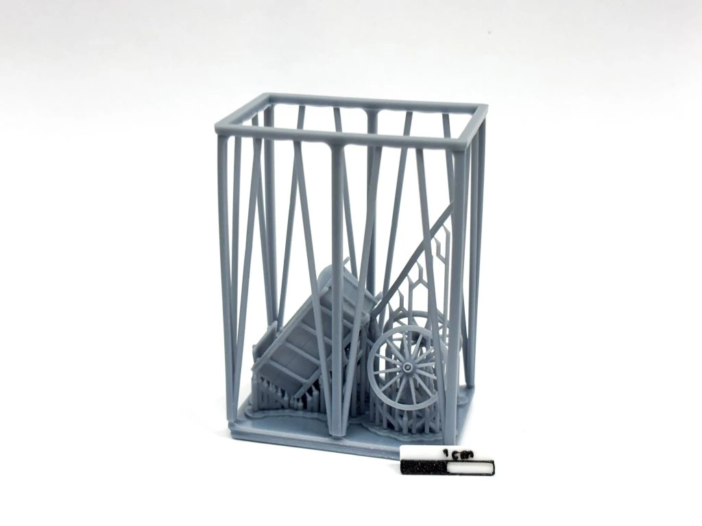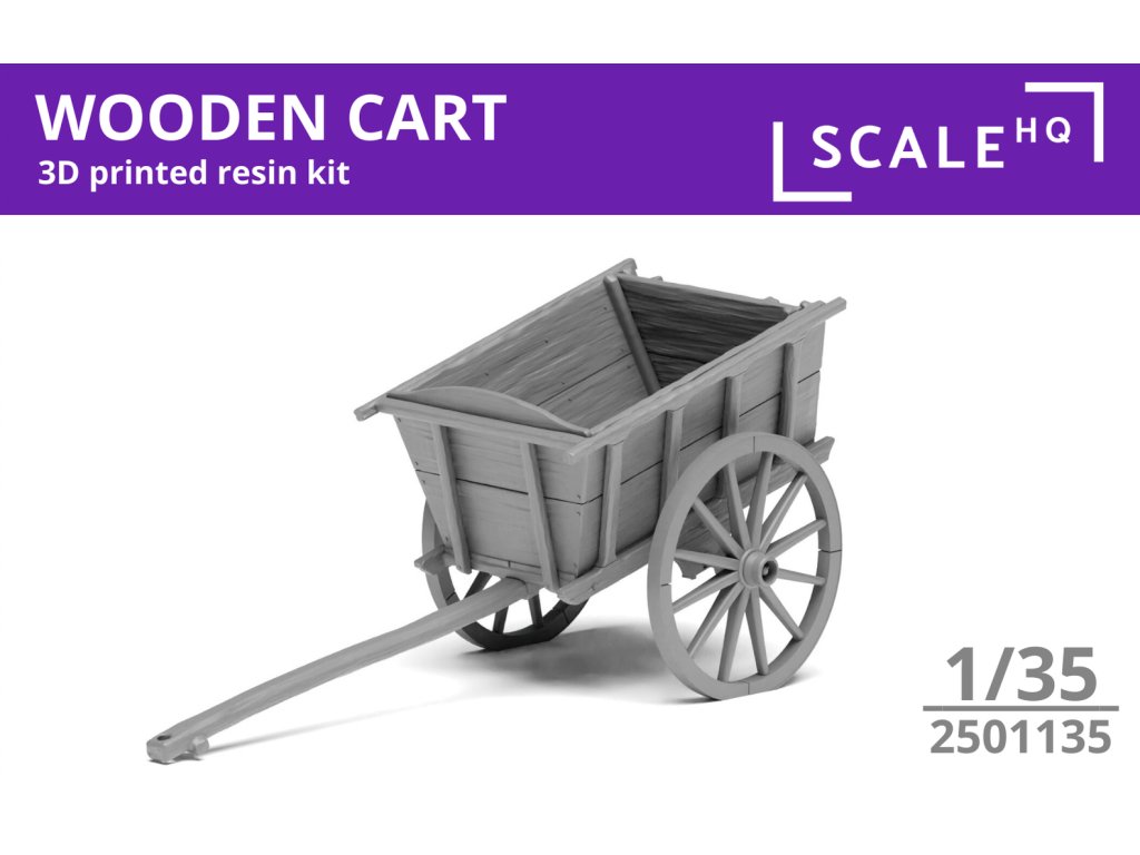 Detailní resinová stavebnice dřevěného vozíku, ideální doplněk pro každou venkovskou scénu.